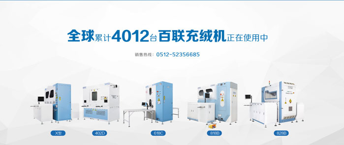 百聯(lián)展品:X型模塊化充絨機(jī)、402D全自動(dòng)絨棉一體機(jī)、618A全自動(dòng)四口流量法充絨機(jī)