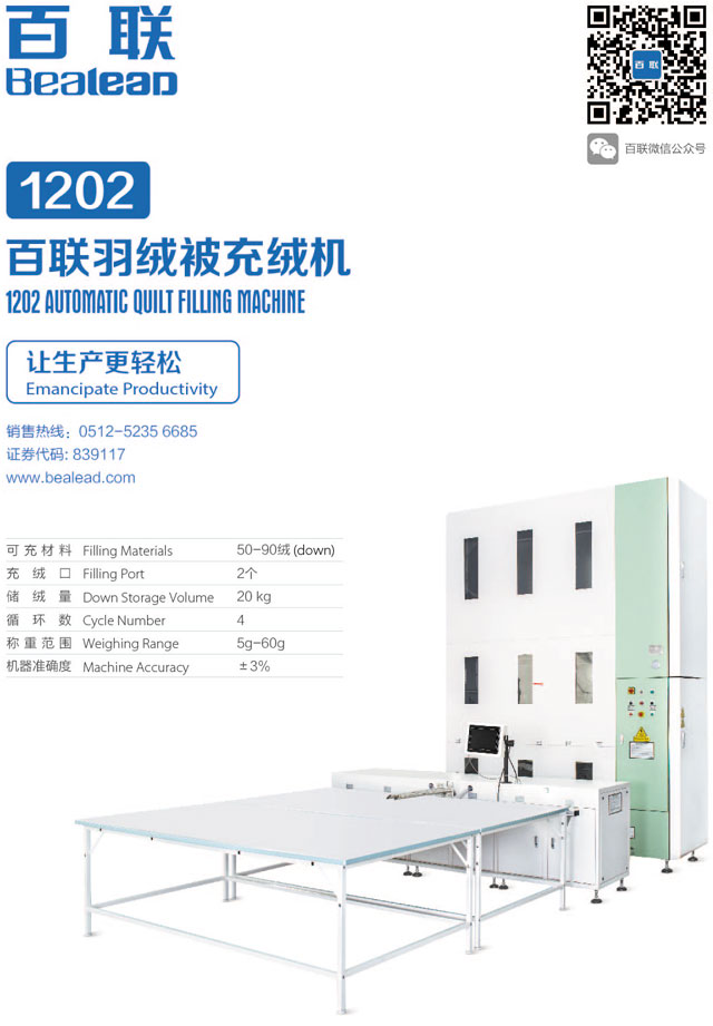 百聯(lián)展品:1202羽絨被充絨機、102B商超羽絨被充絨機、枕頭壓縮包裝機