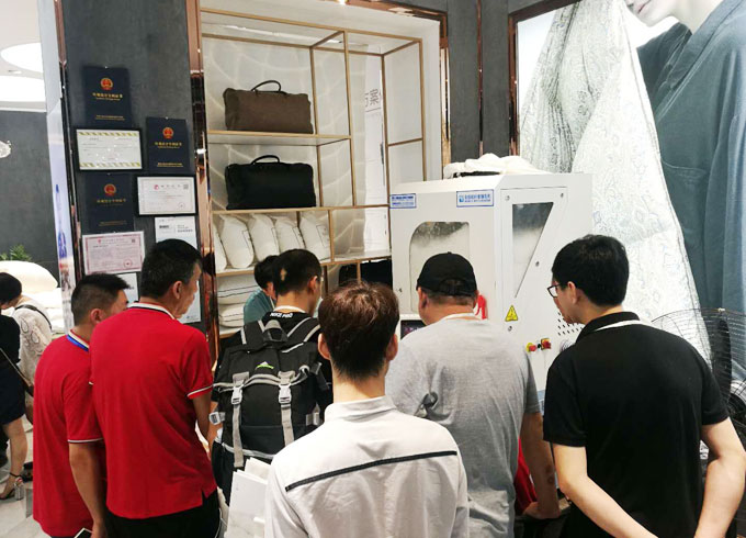 百聯受邀參展,重點展示了滿足門店定制需求的102B商超羽絨被充絨機?!耙淮脖蛔?分鐘就填充好了,成品效果也很好,不錯?!睂I用戶通過現場體驗102B商超羽絨被充絨機的性能表現加深了對該產品的認可。