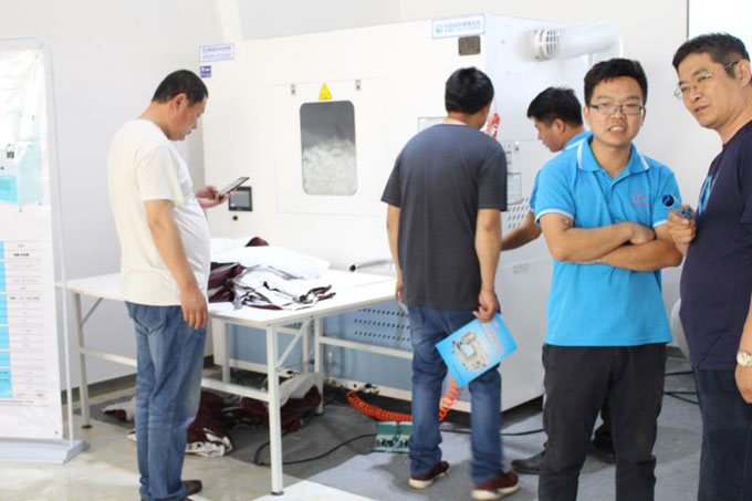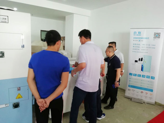 5月18日,百聯還在湖北武漢盤龍城佳海工業園首次向華中地區的客戶推介最新開發的4401X自動充絨機。