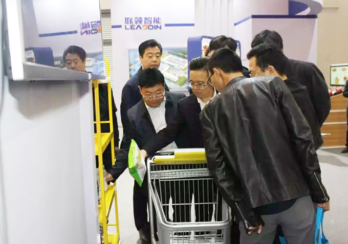 智能不止于此。聯領智能還展示了可定制尺寸的基于稱重傳感技術和大數據應用技術開發的智能購物車。