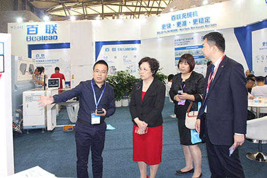 展會剛開幕,中國縫制機械協會理事長何燁女士一行就親臨百聯展位指導,對百聯近年取得的成績以及持續推進全自動充絨機等產品發展給予了高度的評價與肯定.
