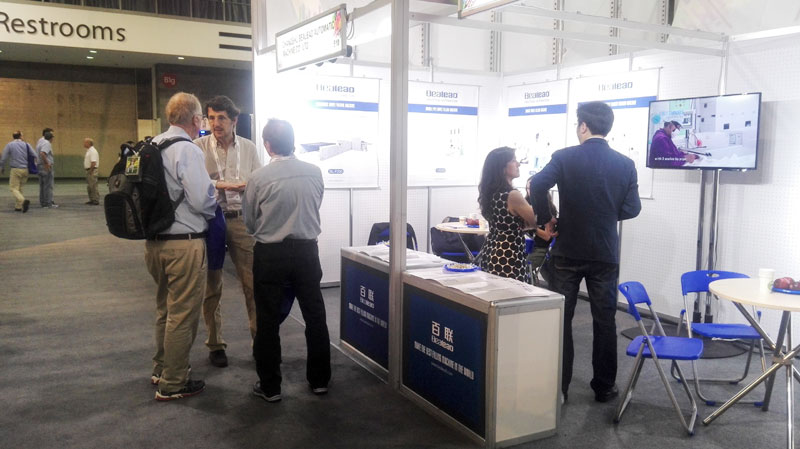 在此次舉辦的北美展會上,百聯以全自動稱重充棉機、充絨機、羽絨被充絨機、全自動被子折疊機和自動刷毛清潔機等家紡系列產品亮相喬治亞世界會議中心。展會上,百聯重點展示了面向家紡生產領域的1202B全自動羽絨被充絨機及BL-F200全自動被子折疊機,受到了北美地區客戶的積極關注。