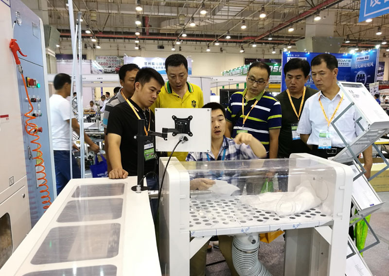 2016年6月30日至7月2日,CSITE2016(山東紡博會)及第18屆中國(青島)國際縫制設備展在青島國際會展中心舉辦。位于H3館的百聯(lián)展位上,新老客戶認真細致地考察了百聯(lián)展示的全自動裁片編號機、818B高性能機型、246B絨棉一體機、402B全自動稱重充棉機。